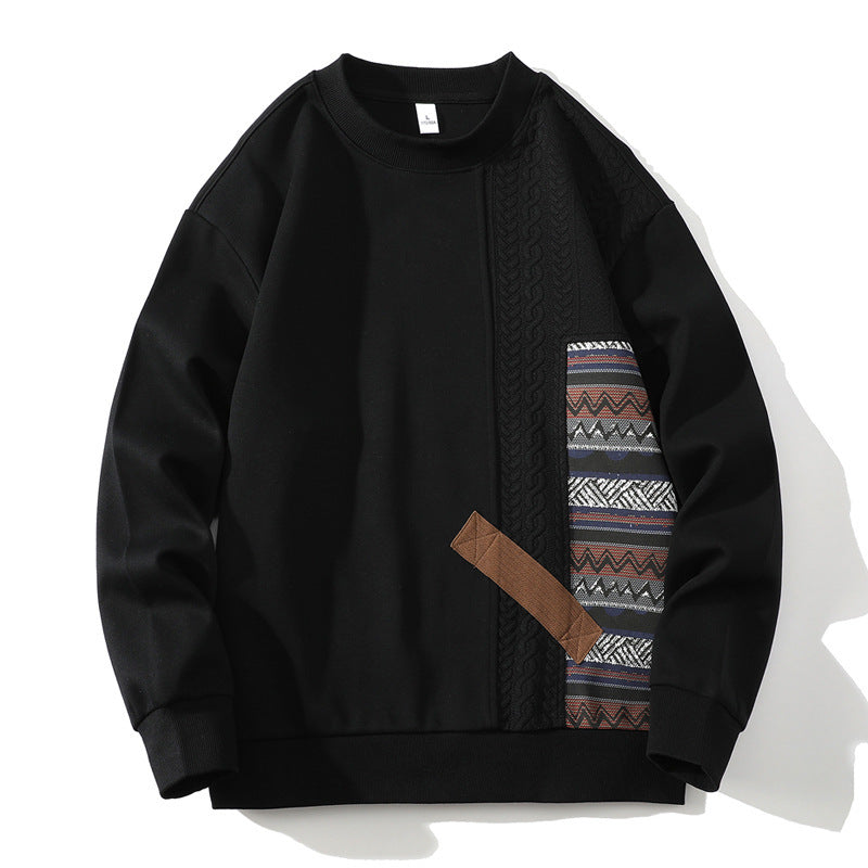 Round Neck Sweater Loose Casual Long Sleeves Patchwork Top